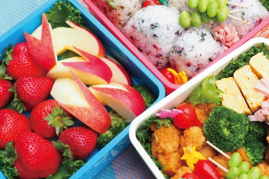 The Japanese prefer fruits to be on the sugary-sweet side. Therefore, fuji, sweeter than most apples and consistent in quality, is the most popular variety. Apples are usually sliced and peeled. We are thrilled when the cut apple presents honey-like syrup around the core, which is known as "a honey core." The sign never betrays us. Apples can act as healthy desserts for school children. Rabbit-shaped apple slices are staples in a bento box. Parents often make them because a full-fledged fruit carving technique is not necessary. A bit more knife work pays off with the kid's smile and exclamation, "Kawaii! (cute)". Though it is unknown when the apple bunnies started to hop into a bento box, the housemaid who served Emperor Meiji (the 121st Emperor, 1852-1912) supposedly created them to entertain her master.