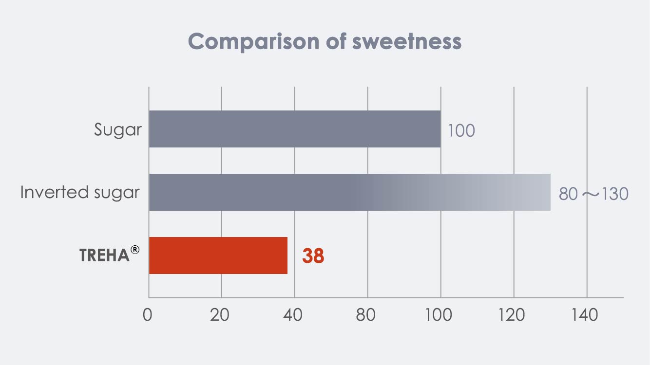 TREHA® is 38% as sweet as sugar and lowers sweetness by partially replacing sugar. TREHA® creates subtle sweetness in a product, even with the use of white chocolate.
