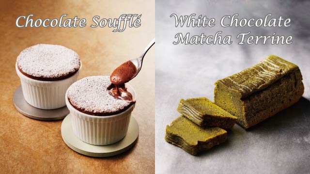 Chocolate Souffle / White Chocolate Matcha Terrine