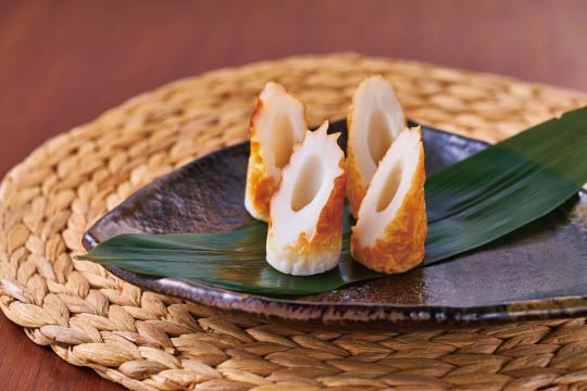 In Japanese, chikuwa (竹輪) means “bamboo ring” because it resembles a bamboo stem when they are diagonally sliced and stood.
