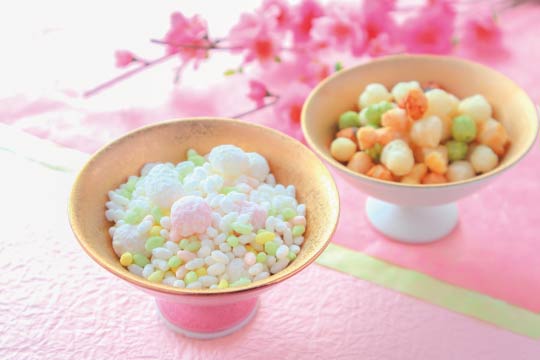 Pastel-toned rice crackers (Hina-arare 雛あられ):