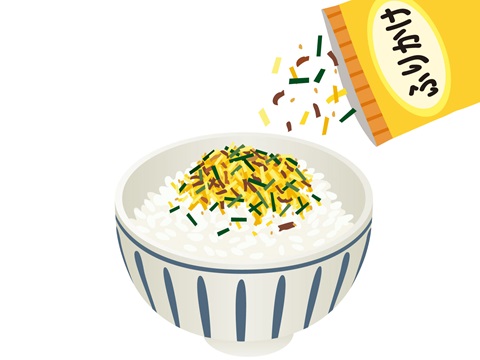 Furikake(ふりかけ), a term combining the Japanese verbs "furi" (to shake) and "kake" (to put on), refers to a seasoning for cooked rice made by drying and finely chopping fish or vegetables, then mixing these with seaweed, sesame seeds, and salt. This uniquely Japanese food complements the staple diet of rice and is gradually gaining recognition overseas under its original name.