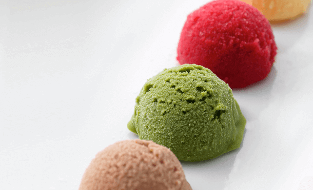 Fill the serving dish with icy water, and place 8. Serve with cherry blossom syrup and brown sugar syrup.