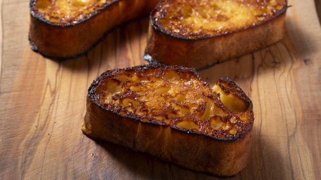 This recipe gives leftover bread new life. Drier bread absorbs the custard more fully, resulting in a richer flavor. TREHA® keeps the texture moist while moderating sweetness. Adding bacon and cheese transforms it into a savory baguette quiche perfect as a meal bread.