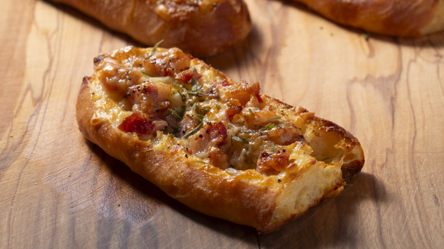This recipe gives leftover bread new life. Drier bread absorbs the custard more fully, resulting in a richer flavor. TREHA® keeps the texture moist while moderating sweetness. Adding bacon and cheese transforms it into a savory baguette quiche perfect as a meal bread.