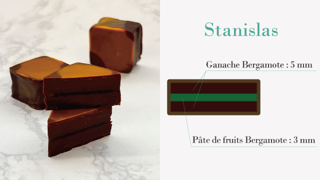 Remove the mold and apply a thin layer of dark chocolate over the ganache. Cut into pieces suitable for bonbons.