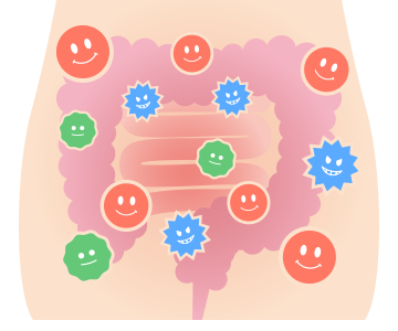 腸内フローラを構成する細菌は、食べ物を分解して宿主側(人間)が吸収できるようにする働きがあることが知られていますが、そればかりでなく、細菌がつくる物質(代謝物)が人間の体に作用したり、細菌が直接腸管を刺激して免疫細胞を生み出したりするなど、その多彩な働きが解明されつつあります。