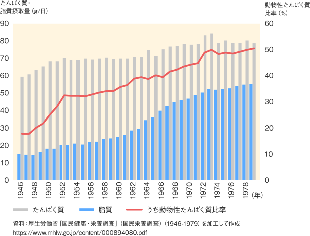 たんぱく質と脂質の摂取量推移(1歳以上)