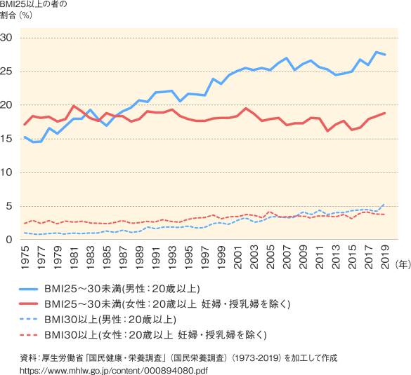 炭水化物は70%から50%に減少、しかし増えてしまった肥満