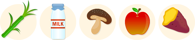 サトウキビには砂糖、牛乳には乳糖、しいたけにはトレハロース、りんごの蜜部分にはソルビトール、焼き芋にはマルトース(麦芽糖)※が含まれています。