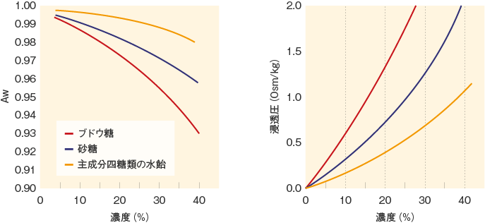 図11:糖の大きさ(分子量)と水分活性(Aw) 図12:糖の大きさ(分子量)と浸透圧