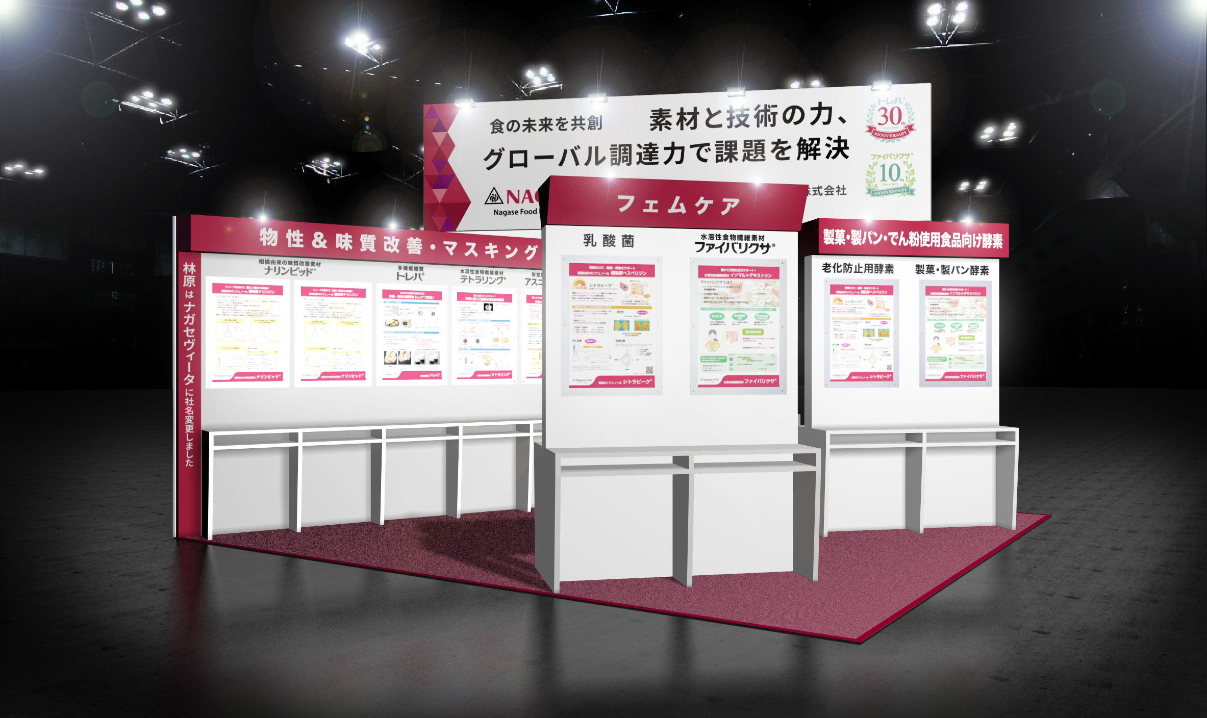 長瀬産業およびナガセヴィータは、「Nagase Food Ingredients」として10月15日~17日、東京ビッグサイトで開催される「食品開発展 2025」に共同出展いたします。注目が高まるヘルスケア・フェムケア商品の開発におけるNAGASEグループの素材や新たに取り扱いを開始する素材、サービスのほか、マスキング・冷凍耐性・プラントベース、ニュートリションなどのテーマで課題解決のご提案を行います。