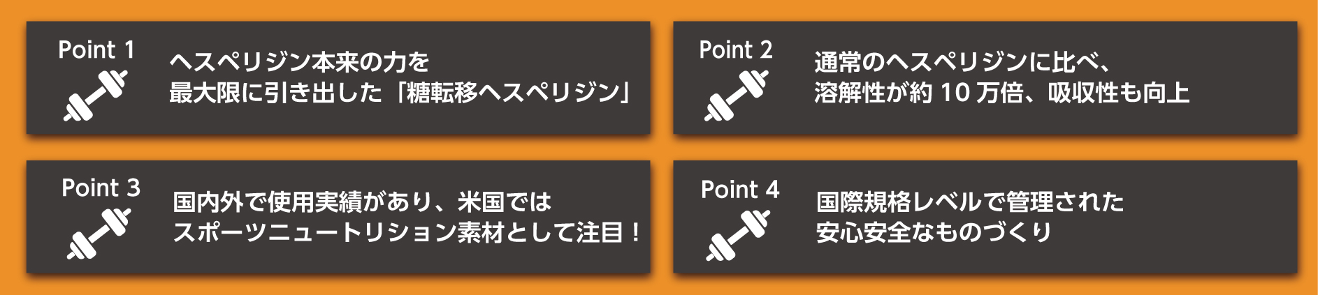 本ページでは、「シトラピーク®」のスポーツ/トレーニング時におすすめのポイントを4つに分けて紹介します。