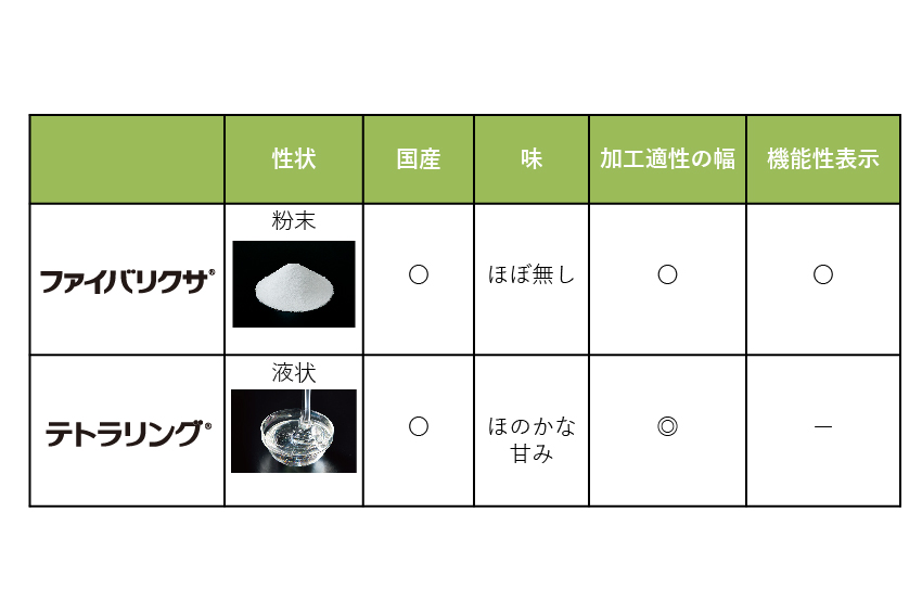 ナガセヴィータの 2種類の異なる水溶性食物繊維は用途によって使い分け可能です。